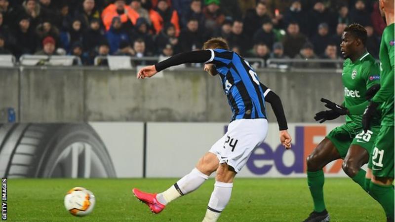 Christian Eriksen scored his first Inter Milan goal as the Italians won at Ludogorets Razgrad in the Europa League last 32.