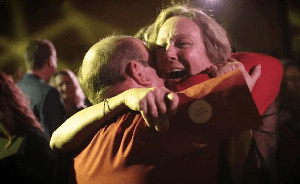 An emotional video taken on the night shows workers react with joy as they realised what had happened.