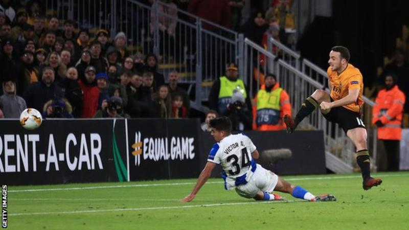 Jota drove in a third after running onto Matt Doherty’s pass before completing his hat-trick with a strike from the edge of the box. He was replaced soon after to a standing ovation from the home crowd.
