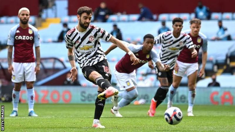 United levelled shortly after the restart when Fernandes calmly slotted in a penalty after Douglas Luiz needlessly fouled Paul Pogba, and Greenwood completed a four-minute turnaround when his low strike found the bottom corner.