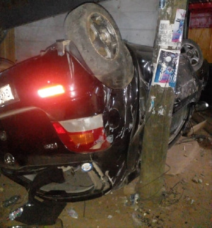An eyewitness who spoke to Prince Benjamin of Class News reported that the accident occurred at around 8 PM. The witness claimed that the driver of a Toyota Vitz car with the license plate GX-3607-20 hit two young men on a motorcycle, causing them to fall off their bike. The Vitz car then flipped and crashed into a teak pole.