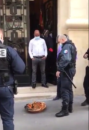 Staff at the Nigerian Embassy in Paris, France had an unwanted and very unlikely surprise at the entrance of their office.