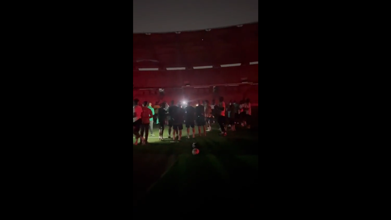 In a video posted online, the Black Stars had to stop training and sing before the lights came back.